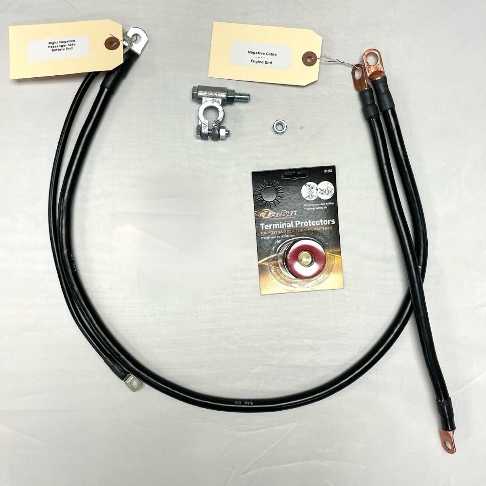 • 2/0 right negative cable with 6 ga body ground and 1/0 ga block to frame.
