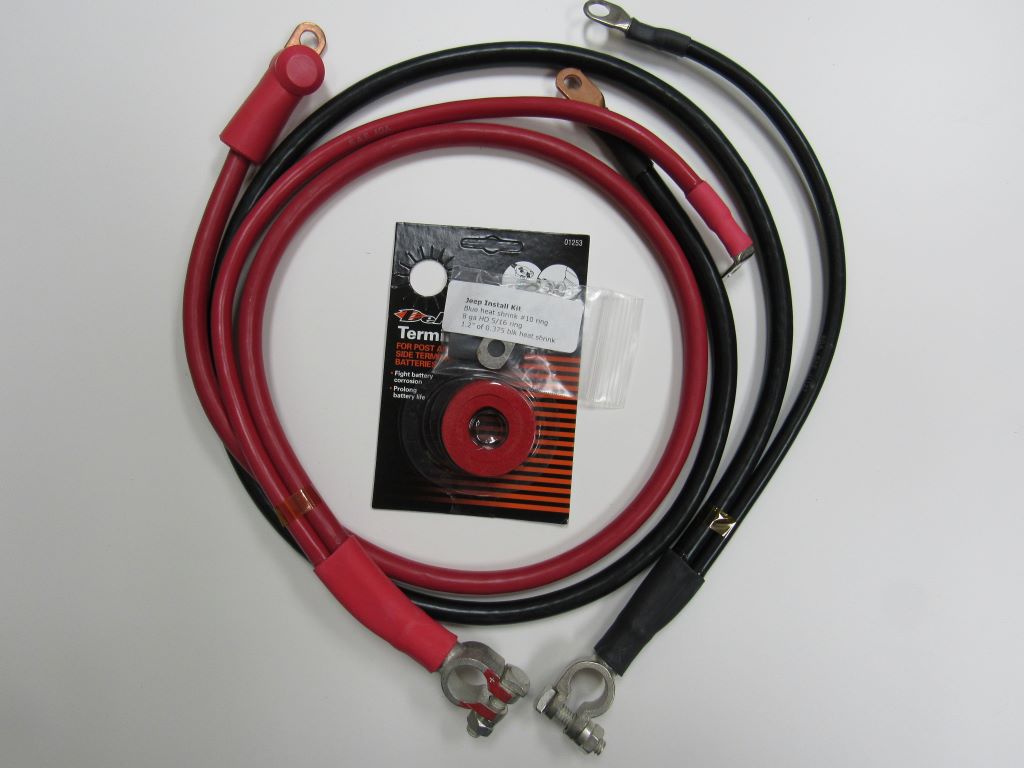 - Installation kit (8ga lug for modifying the Jeep Y cable with heat shrink and a terminal for the starter solenoid)