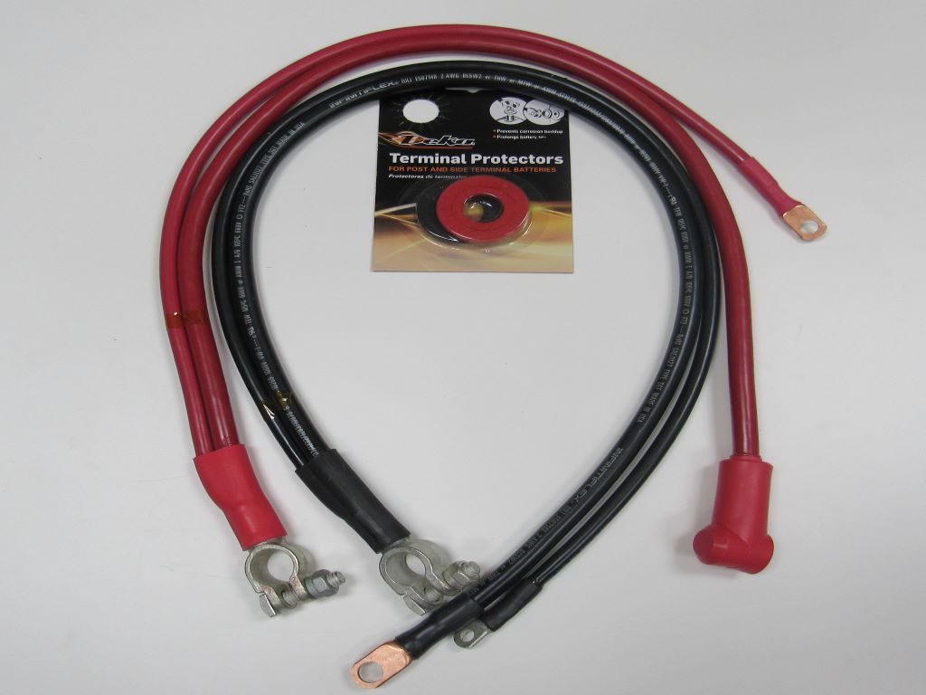 Replacement battery cables for  Jeep Wrangler YJ models with 2.5L AMC Straight-4 engines, 3 and 5 speeds, from 1987 to 1995.